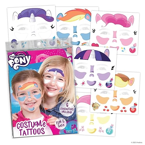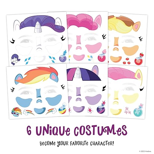 My Little Pony Costume Face Temporary Tattoos – Tattoo Set for Kids Featuring Twilight Sparkle, Rainbow Dash, Pinkie Pie & More, Easy Halloween Costume Accessory, Non-Toxic & Skin-Safe