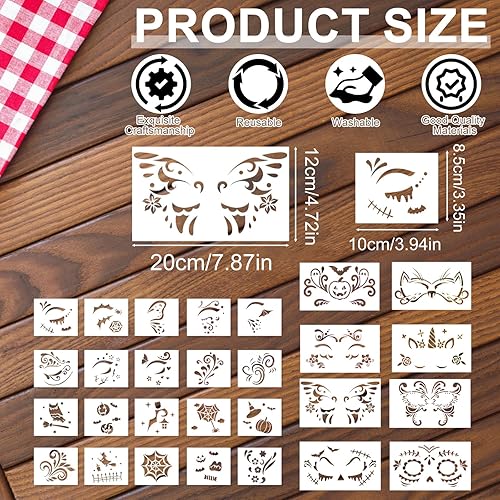 28pcs Body Paint Stencils, Premium Reusable Face and Body Paint Templates Kit Suitable for Holiday Party Makeup Temporary Tattoo Art