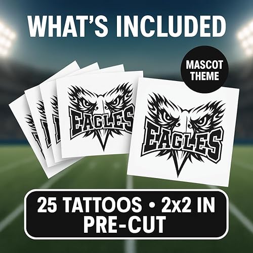 Eagle Mascot Temporary Tattoos – 25-Pack Pre-Cut Skin-Safe Tattoos – School Spirit Party Favors, Sports Events, and Classroom Prizes – FDA Compliant