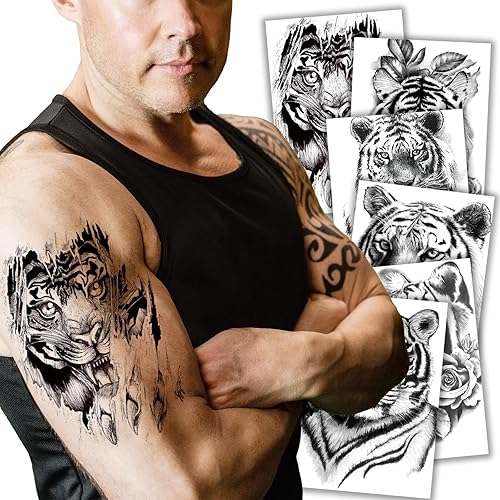6 Sheets Long Lasting Leopard Temporary Tattoos - Black and White Leopard Tattoo Temporary Realistic - Waterproof Fake Tattoos for Adults - Western, Gothic & Watercolor Styles