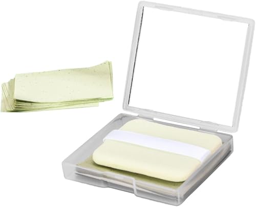 1set Oil Absorbing Sheets Portable Mirror Makeup Puff of Tea Oil Blotting Paper for Oily Suitable for Men Women Convenient Easy to Use