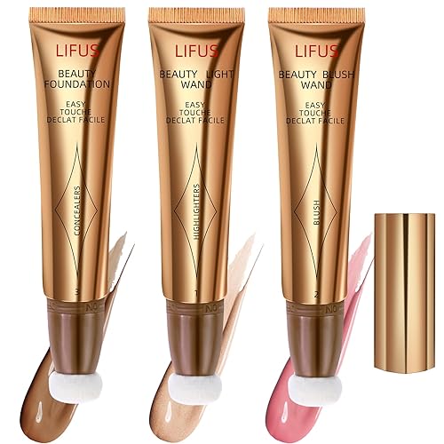 Beauty Wand Makeup Set - Face Liquid Cream Contour Highlighter Bronzer Blush Stick with Cushion Applicator - Lightweight, blendable, Natural, Long-Lasting, and Easy to Apply