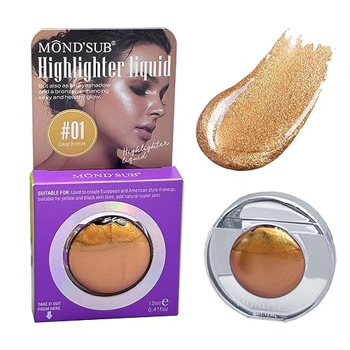 MONDSUB Multi-Use Liquid Highlighter for 3D Contour & Glow - Weightless Buildable Formula with Vitamin E, Warm Bronze Shimmer for Medium to Dark Skin Tones (0.33 Fl Oz)