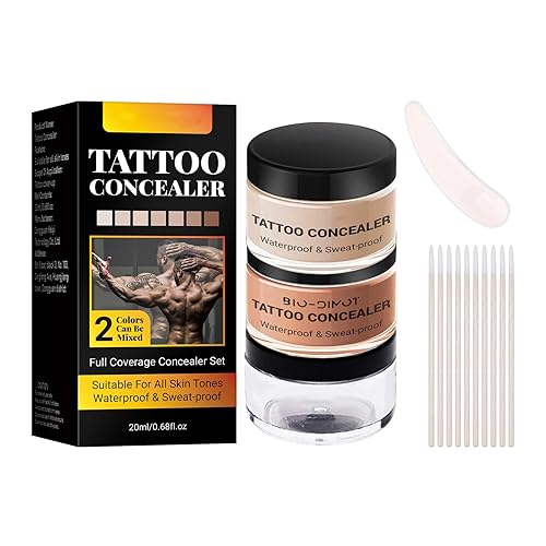 Tattoo Cover Up Makeup Waterproof - Full Coverage Tattoo Concealer for Body and Face, Waterproof Transfer-Resistant Formula, Smooth Blendable Cream with Color Matching Kit for Men and Women
