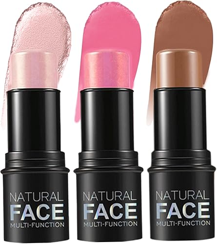 Contour Stick 3Pcs Set, 3 Colors, Waterproof Long Lasting Blush Stick Natural Finish, Multipurpose Highlighter Makeup for Cheeks, Lips, All Skin