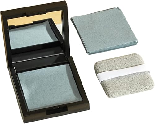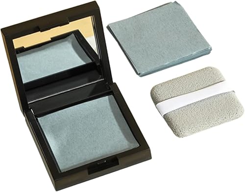 Portable Oil Absorbing with Mirror and Powder Puff for Women Compact Face Blotting Paper Controls Shine Shrinks Pores Makeup Friendly for Daily Use