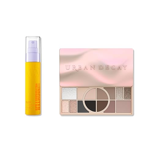 Urban Decay Naked Shaped Cool Palette & Dewy Setting Spray Travel Bundle - Multi-Use Neutrals - All Nighter Waterproof Setting Spray Glow (1 Fl Oz) for Transfer-Resistant Eye & Face Makeup