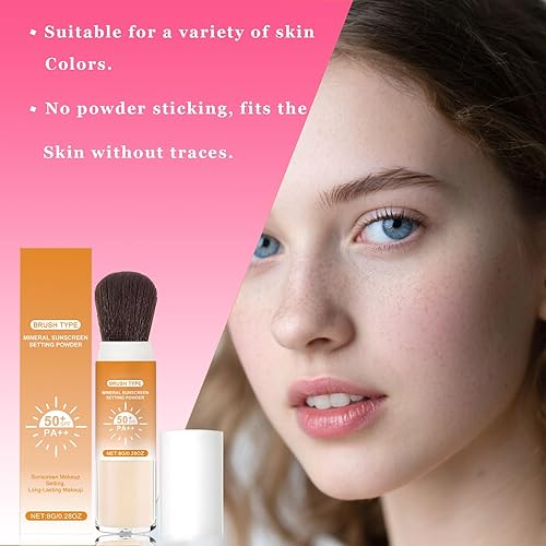 Mineral Sunscreen Setting Powder, SPF 50 Transparent Brush Powder, Long-Lasting,Lightweight Breathable, Oil Control Natural Matte, Suitable for Face, Scalp & Hair