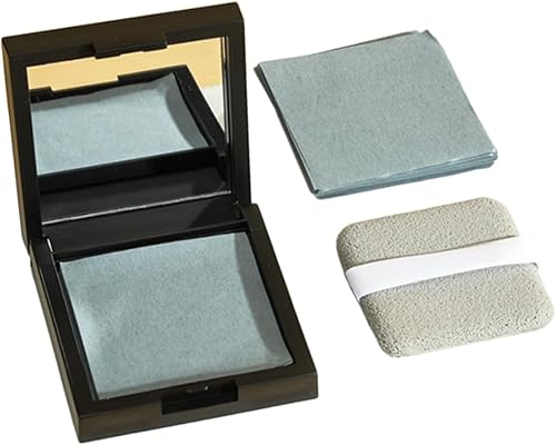 Oil Absorbing for Face Shine Oil Control Papers with Portable Mirror and Powder Puff Thin Lightweight Face Cleaning for Oily Skin Convenient Pocket for Go Use