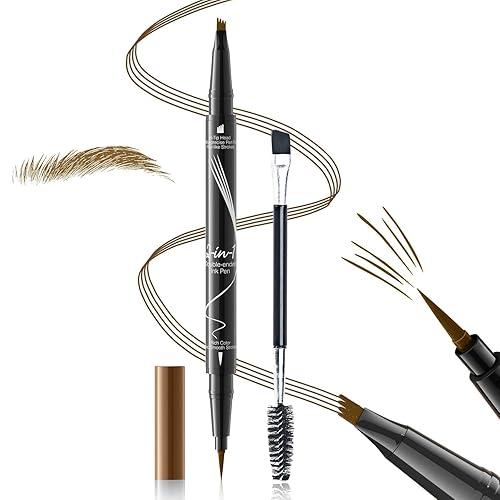 Eyebrow Pencils for Women 2-in-1 Dual-Ended, Microblading Eyebrow Pen 4-Fork-Tip & Precise Brush-Tip, Brow Pen Long-Lasting Waterproof & Smudge-Proof Natural Hair Like Brows (Light Brown)