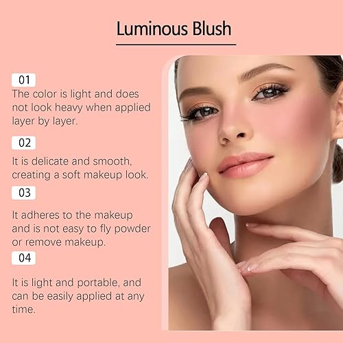 Pink Shimmer Blush, Sheer Shimmer Shades for Face Highlighter Makeup - Gradient Cherry Blossom Pink Color, Buildable Color Natural Face Makeup, Long-Wear Blush for Cheeks & Eye