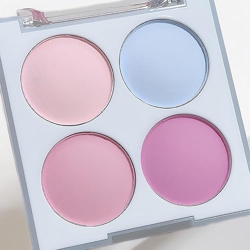 4 Color Ice Cream Blush Palette - Coral Pink Purple Blusher - Creamy Powder Blush for Cheeks Natural Look