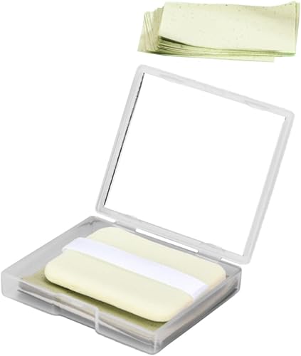 Facial Oil Absorbing with Mirror Compact and Powder Puff Portable Oil Control Blotting Papers for Oily Skin Skin Friendly Material Removal for Daily Use