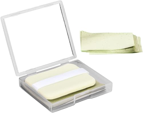 Green Tea Facial Oil Blotting Paper with Mirror and Puff Portable Oil Absorbing Sheets for Oily Skin Controls Shine and Minimizes Pores Lightweight Face Cleaning Paper for Men and
