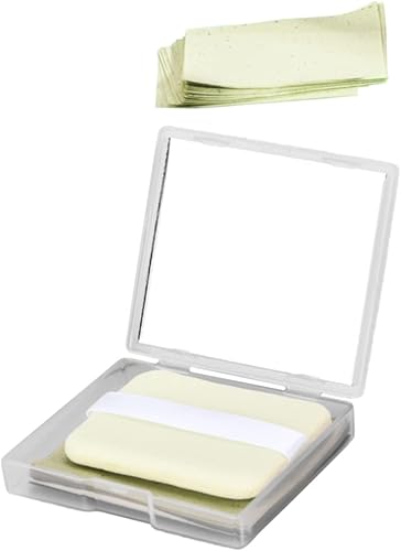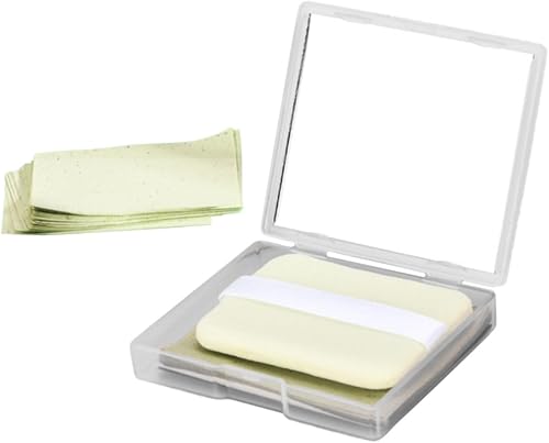 NOLITOY Blotting Sheets with Mirror and Puff for Face Lightweight Facial Oil Absorbing Paper for Oily Skin Portable Makeup Friendly for Men and Women