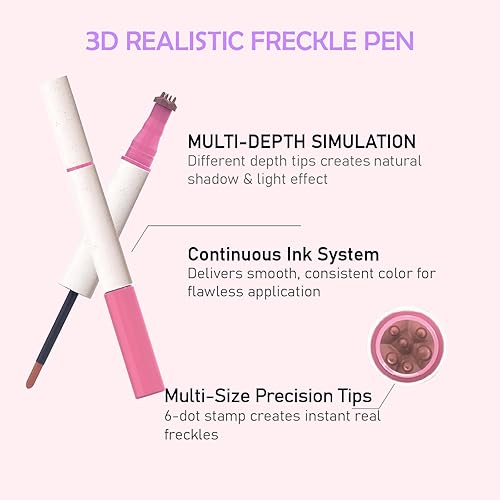 Natural Freckle Pen Waterproof with Blush, 2 in 1 Light Brown Freckle Stamp for Fake Freckles & Soft Pink Liquid Blush for Cheeks, Waterproof Long Lasting Natural Sunkissed Makeup