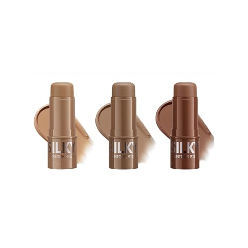 3 Colors Cream Contour Stick, Matte Bronzer Stick, Multi-Use Face Makeup Contour, Bronzer, Concealer and Foundation Stick, Waterproof & Long Lasting Face Shaping Makeup for Beginners