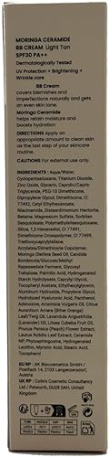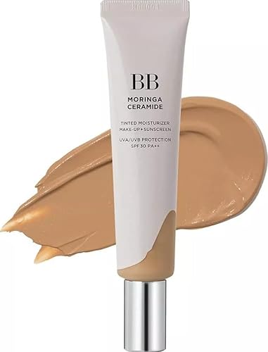 Moringa Ceramide BB Cream SPF 30 PA++27 Light Tan 1 fl oz, Makeup Base, Tone Up Sunscreen for Face, Lightweight, Non-greasy, Hydrating, Natural Finish with SPF 30 PA++