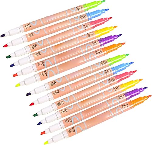 GZBABY Dual Tip Highlighter 12 Pcs, Highlighters with Pastel Base and Overlay Colors, Eye Protection
