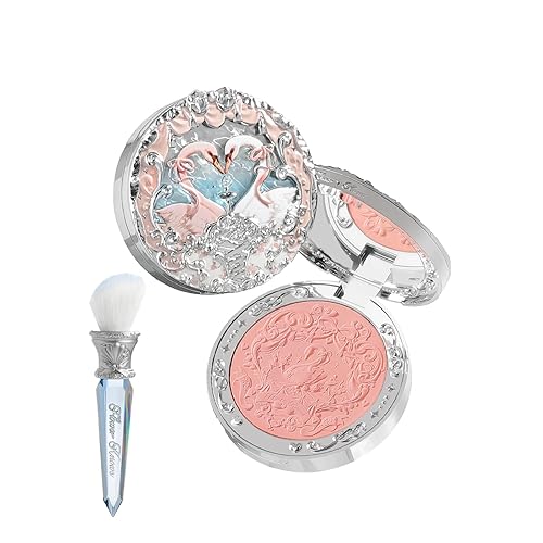 Flower Knows Swan Ballet Embossed Blush+Brush Set,Translucent Matte Finish,Buildable & Blendable Powder Blush for cheeks,Pressed Setting Powder,Natural Flush for All Skin Tones