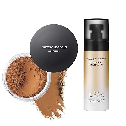 bareMinerals Original Loose Powder Foundation SPF 15, Clean Mineral Powder Face Makeup, Sheer-to-Full Coverage, Talc-Free, Non-Comedogenic, Vegan + Mineral Veil Natural Matte Setting Spray Bundle