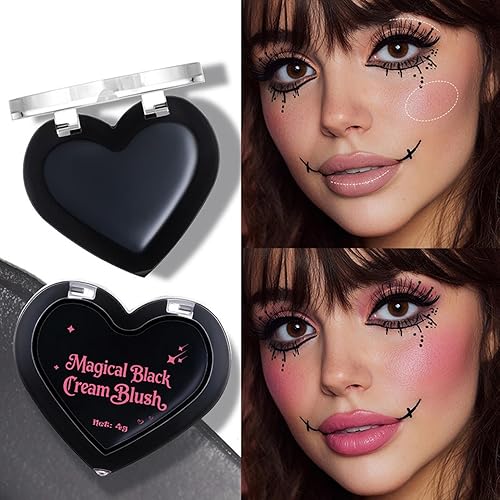 Blush Cream for Cheeks, Black Creamy Blush, Long Lasting Color Changing for Women Blending Girls Face Cosmetic Festive Halloween Party