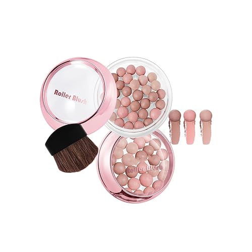 Roller Blush, Blush for Cheeks, Powder Blushs Ball with Brush Lightweight Long Lasting Buildable Bronzing Pearls, Face Cheek Highlighter & Sculpting Powder Makeup for Natural Radiant Finish