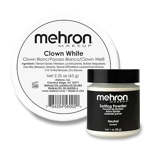 Mehron Clown White Face Paint 2.25 oz & Setting Powder Neutral 1 oz | Professional Cream & Loose Powder Makeup for Stage, Film, Cosplay & Halloween
