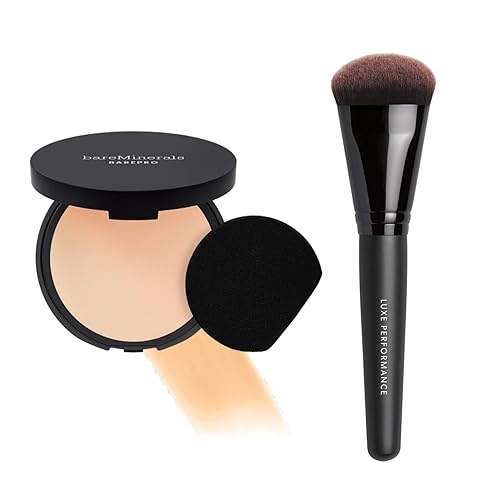 bareMinerals Barepro 24HR Skin-Perfecting Matte Powder Foundation + Luxe Performance Synthetic Face Brush for Flawless Coverage Bundle