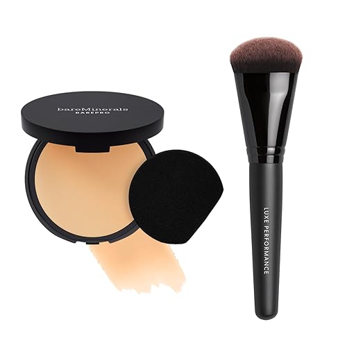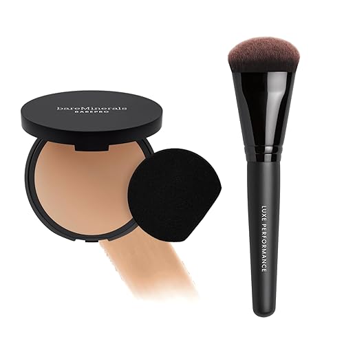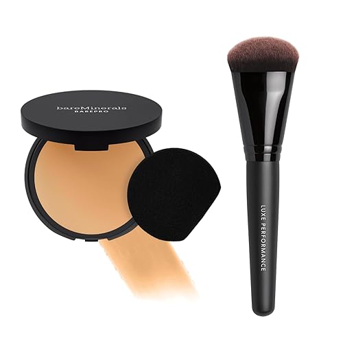 bareMinerals Barepro 24HR Skin-Perfecting Matte Powder Foundation + Luxe Performance Synthetic Face Brush for Flawless Coverage Bundle
