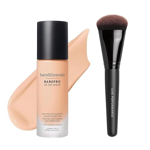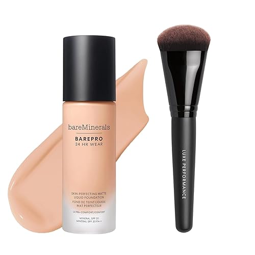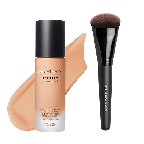 bareMinerals Barepro 24HR Wear Matte Liquid Foundation with Mineral SPF 20 + Luxe Performance Brush Bundle