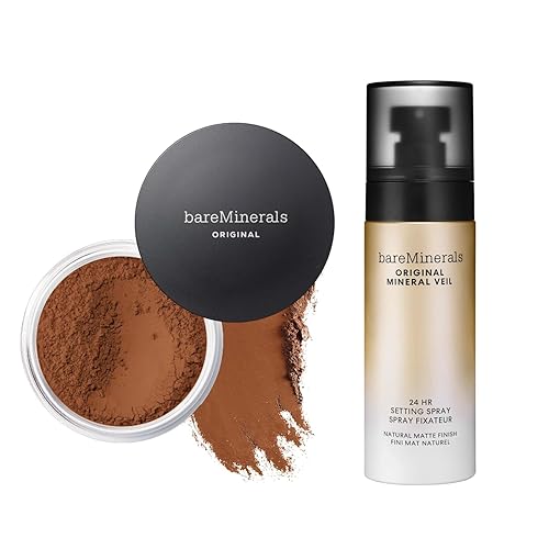 bareMinerals Original Loose Powder Foundation SPF 15, Clean Mineral Powder Face Makeup, Sheer-to-Full Coverage, Talc-Free, Non-Comedogenic, Vegan + Mineral Veil Natural Matte Setting Spray Bundle