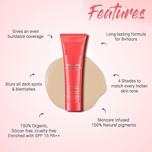 Natural Makeup Acne Prone All Day Liquid Full Coverage Foundation (Seashell, 30Ml, Natural Finish), Pack Of 1, Nude