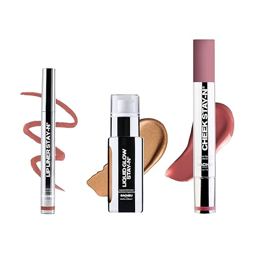 Sacheu Glowmance Bundle — High Pigment, Buildable, Long Lasting Luminous Glow in a Lightweight, Dewy Finish — Includes Lip Liner, Cheek, & Liquid Glow STAY-N