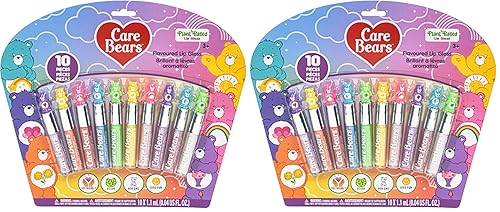 Townley Girl Care Bears 10 Piece Plant Based Lip Gloss, Girls Party Favors, First Makeup Set for Girl, Perfect for Parties, Sleepovers, and Birthday Gifts, Ages 3 (Pack of 2)