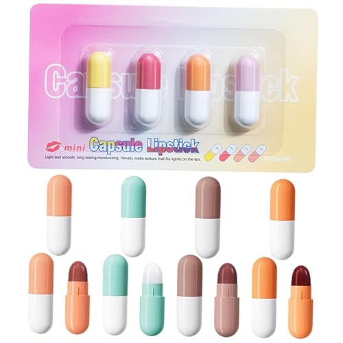 4 Sets Matte Capsule Lipstick Set for Women Mini Pill-shaped Lipsticks Versatile Hydrating Shades Makeup Kit for Birthday Party and Creative Expression
