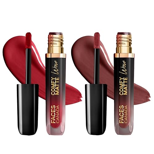FACES CANADA Comfy Matte Wow Liquid Lipstick - The Bold Edit, (3.8ml x 2) | Cocoa Crush 07 + Maroon Maven 05 | Long Lasting | Matte Finish | Lipstick Combo | Pack of 2
