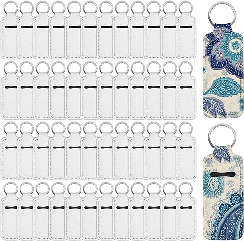 48 Pcs Sublimation Lip Balm Keychain Holder, Blanks Neoprene Lipstick Protective Cases for Women DIY Travel Crafts White