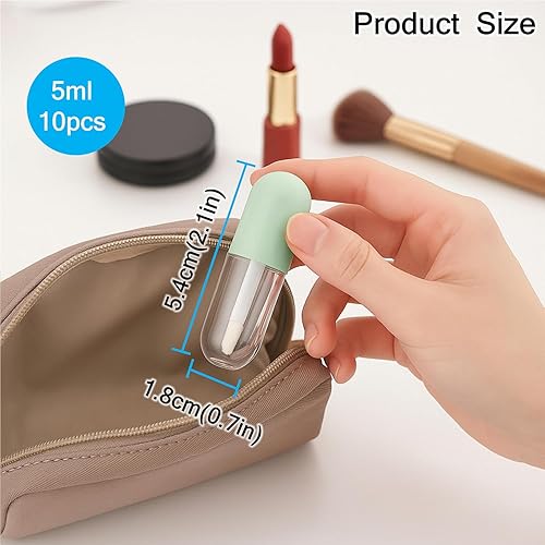 10 Packs 5ml Capsule Lip Gloss Tubes with Wand Applicator Empty Refillable Lipstick Bottles Travel Mini Cosmetic Containers for DIY Lip Gloss, Lip Oil, Liquid Lipstick