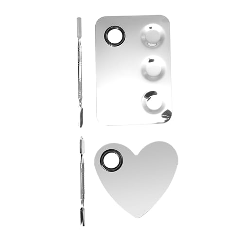 2sets Stainless Steel Cosmetic Mixing Plates with Spatulas for Makeup and Nail Art Durable Manicure Color Mixing Tools Easy to Clean and Deform Resistant