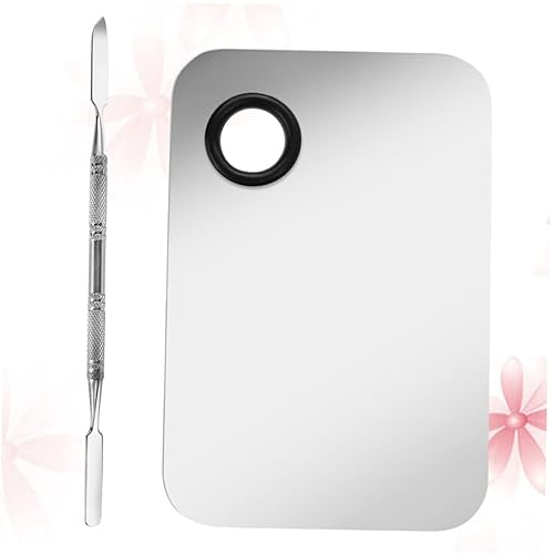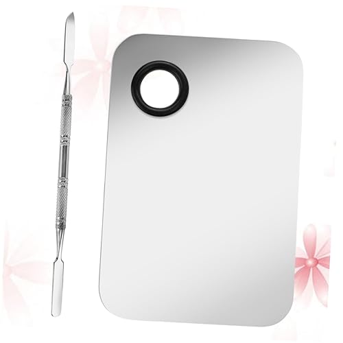 MERRYHAPY 2sets Stainless Steel Makeup Palette Kit for Nail Art Eyeshadow Mixing Professional Boards with Mixing Sticks Easy Clean DIY Tool for Home Use