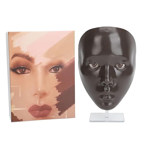 Makeup Practice Face, Silicone Mannequin for Makeup Practice, 5D Silicone Full Face Practice Eyelash Eye Shadow, for Emerging Makeup Artist, Beginners, Girl Present (Dark Skin)