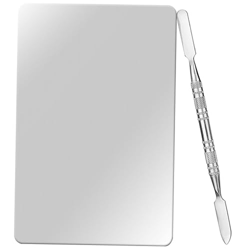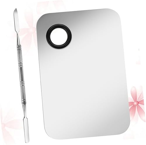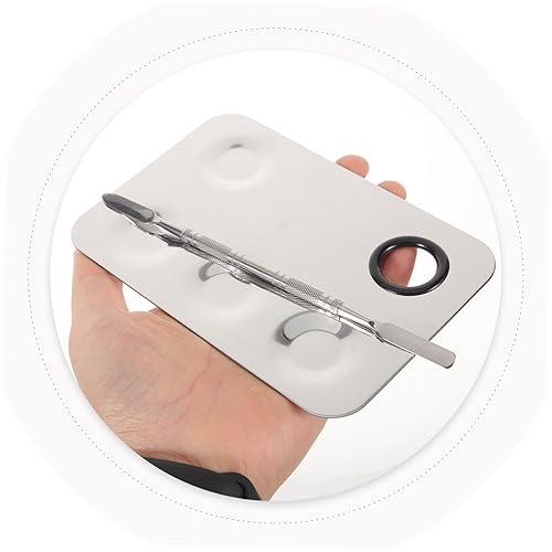 MERRYHAPY Stainless Steel Cosmetic Mixing Plate with Spatula Set for Foundation and Eyeshadow Durable and Easy to Clean Makeup Palette for Nail Art and Pigment Blending