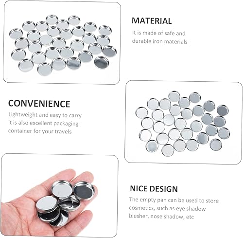 30pcs Empty Round Metal Pans for Diy Cosmetics Versatile Makeup Accessory for Eyeshadow Blusher Highlighter Lightweight and Portable Aluminum Containers