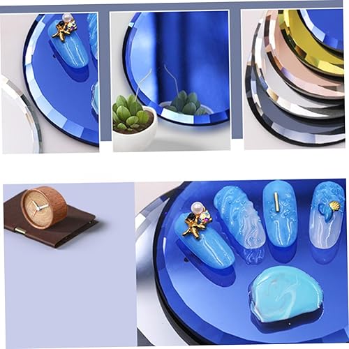 MERRYHAPY Round Nail Art Mixing Palette Mirror Display Trays for Manicure Includes Blue Yellow Colors Nail Salons and Artists