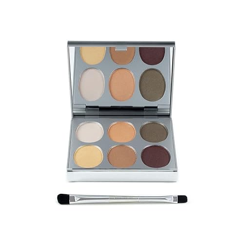 Jerome Alexander New Again Eyeshadow Palette & Brush, 6 Buildable & Blendable Micronized Powder Shades (Basic Choice)