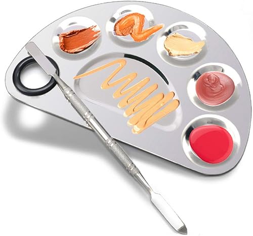 Makeup Palette Stainless Steel Cosmetic Palette 6-Well with Spatula Tool for Nail Art Eye Shadow Mixing Foundation Painting Artist Mini Mixing Metal Palette Silver 4.9x3.3inch