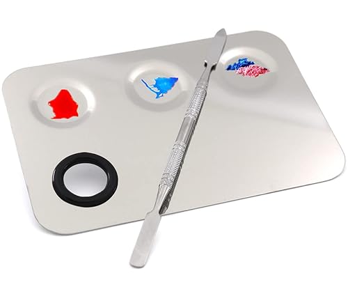 Miamay 6 by 4 Inches Makeup Palette Stainless Steel 3-dents Nail-art Cosmetic Artist Mixing Palette with 6 Inches Spatula Tool
