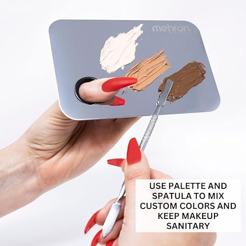 Mehron Makeup Professional Stainless Steel Artist Mixing Palette with Spatula | Makeup & Foundation Palette | Mixing Tray for Blending All Types of Beauty, Special FX, Halloween, & Performance Makeup
