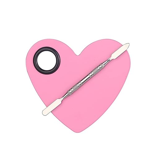 1 Set Heart Stainless Steel Cosmetic Makeup Palette with Spatula Cosmetic Artist Palette Mixing Palette with Spatula Nail Art Eye Shadow Lipsticks Mixing Makeup Tools, Pink